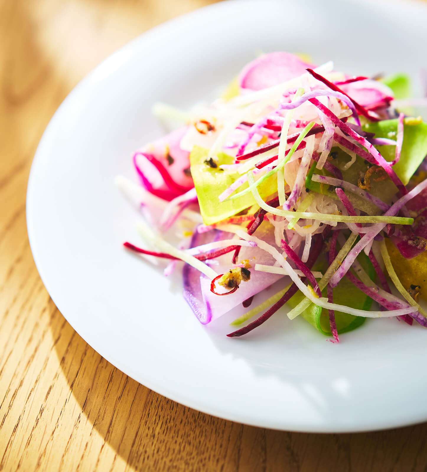 「真摯に野菜づくりに向き合う青木さんを見て、それをサラダから感じられるものにしたいと思いました。まずは、青木さんの農園に欠かせない、伝統野菜の“三浦大根”を軸に考えはじめました」