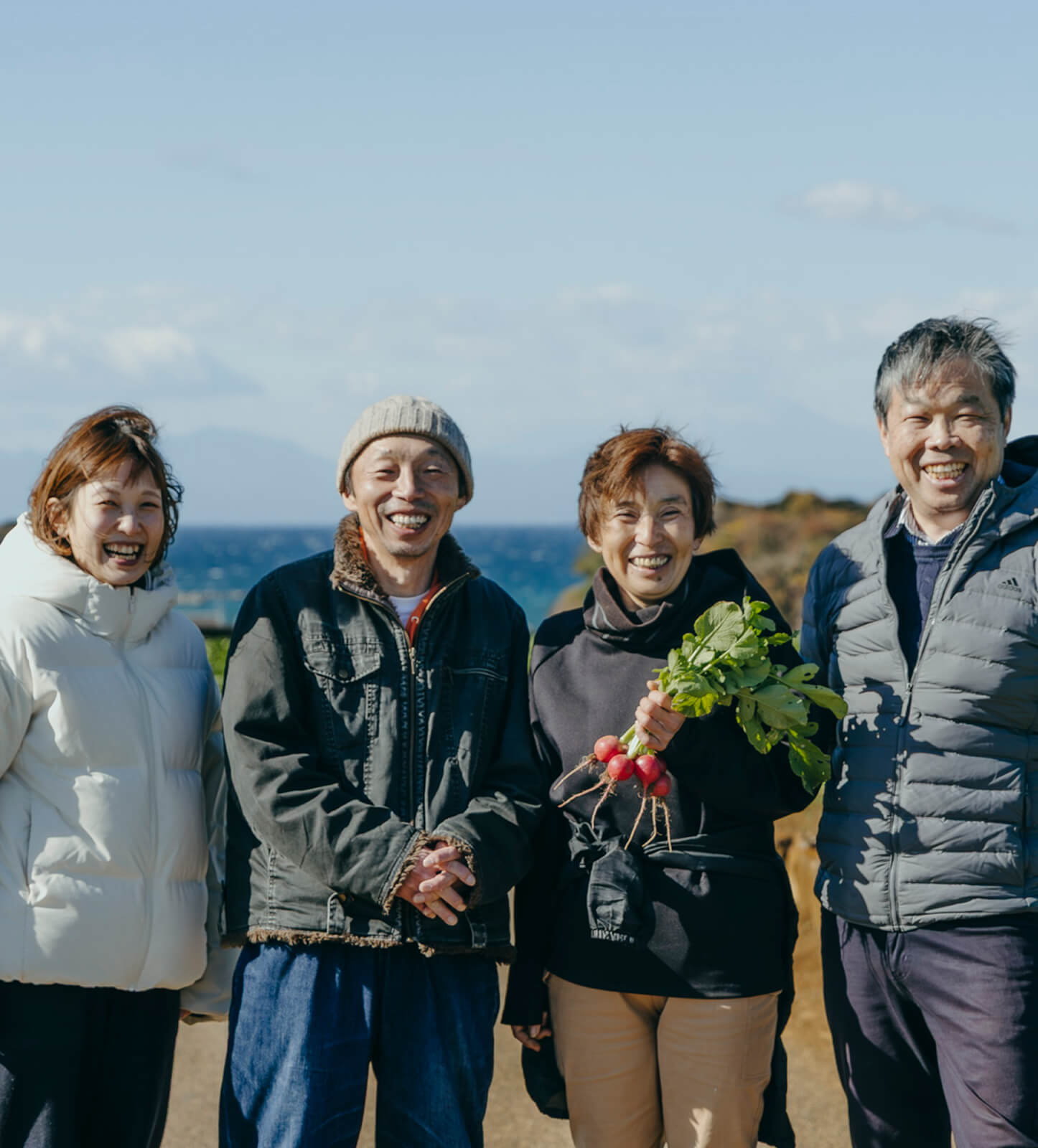 三浦大根の収穫時期に入ると、地面に膝をついて、やーって無心で引っこ抜く。けっこう大変です。でも、〈RF1〉の商品が野菜のおいしさを引き出してくれて、お客さまからの感想を届けてくれる。その声がある限り、三浦大根を作り続けるのが私の役目だと思っています。