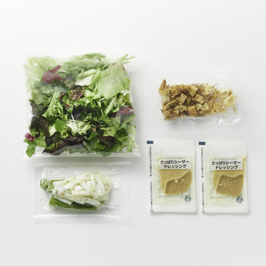 ④残りの「さっぱりシーザードレッシング」1パックを回しかけて出来上がり。